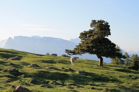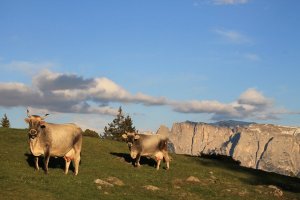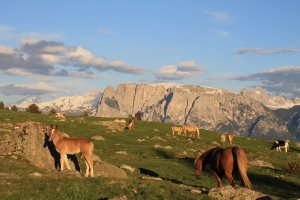 Auf den weiten Hochflächen der Rittner Alm die über 1000 ha umfasst und sich vom „ Loden“ auf 1600m bis „Schianondt“ auf 2200m erstreckt leben im Sommer bis zu 700 Rinder und an die 250 Pferde.