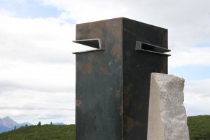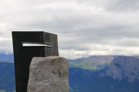 In questa scultura e´Presente , e si puo `toccare con mano, un frammento di roccia dolomitica prelevato dal suo contesto originali.